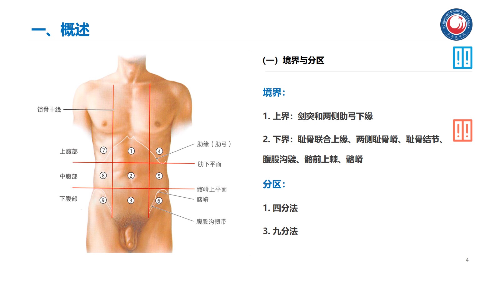 了解:腹部的境界、分区、体表标志和主要脏器的体表投影。