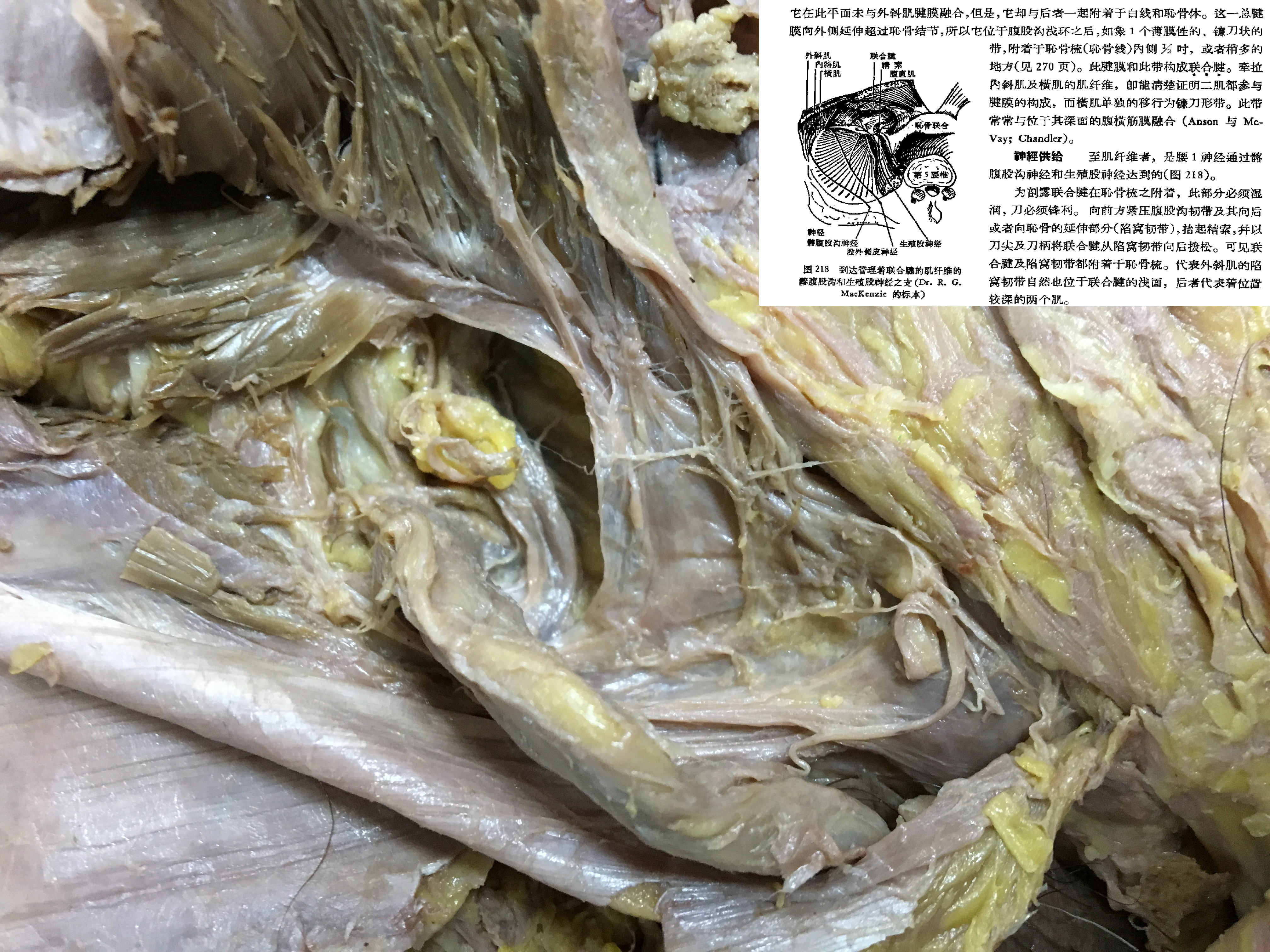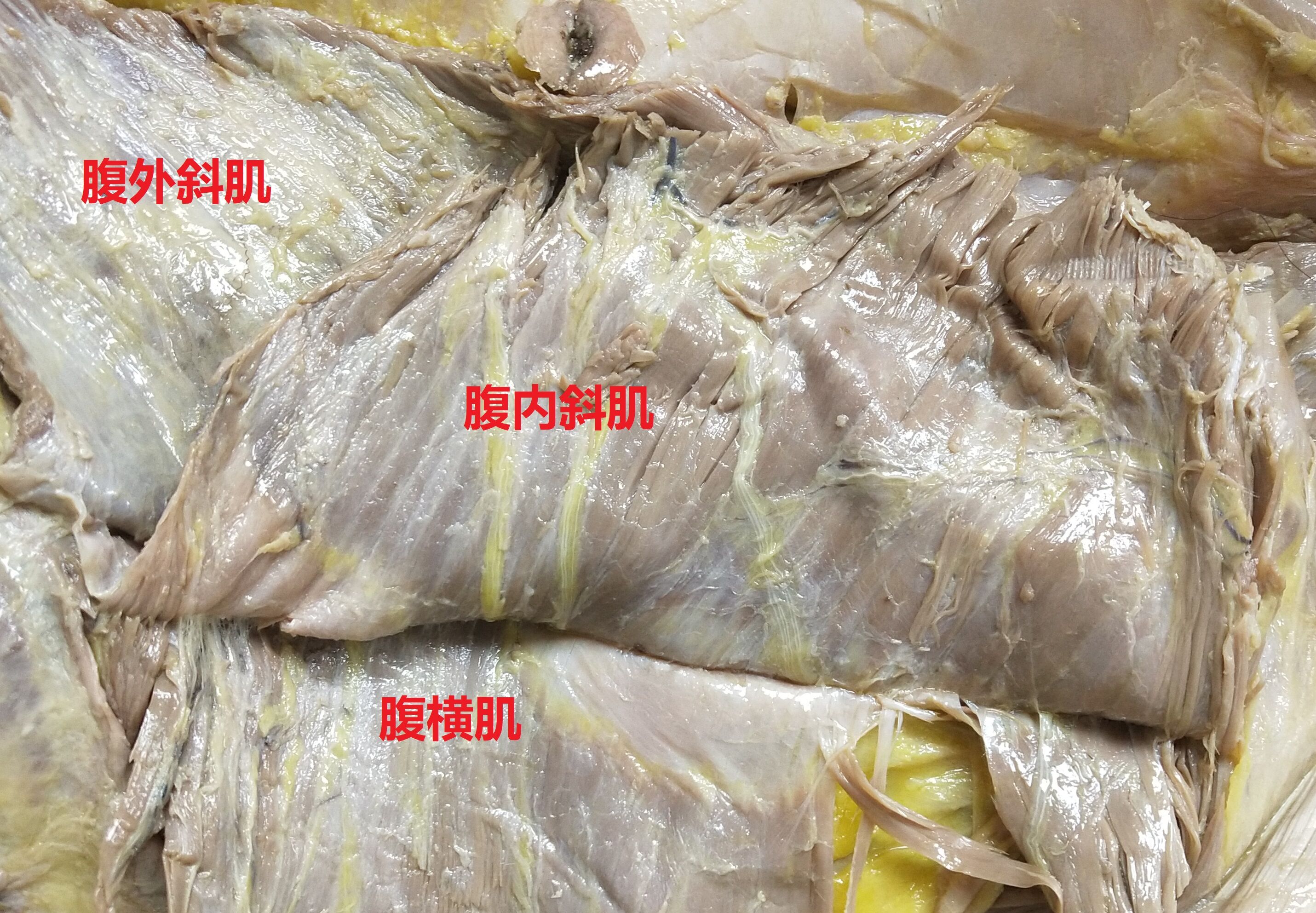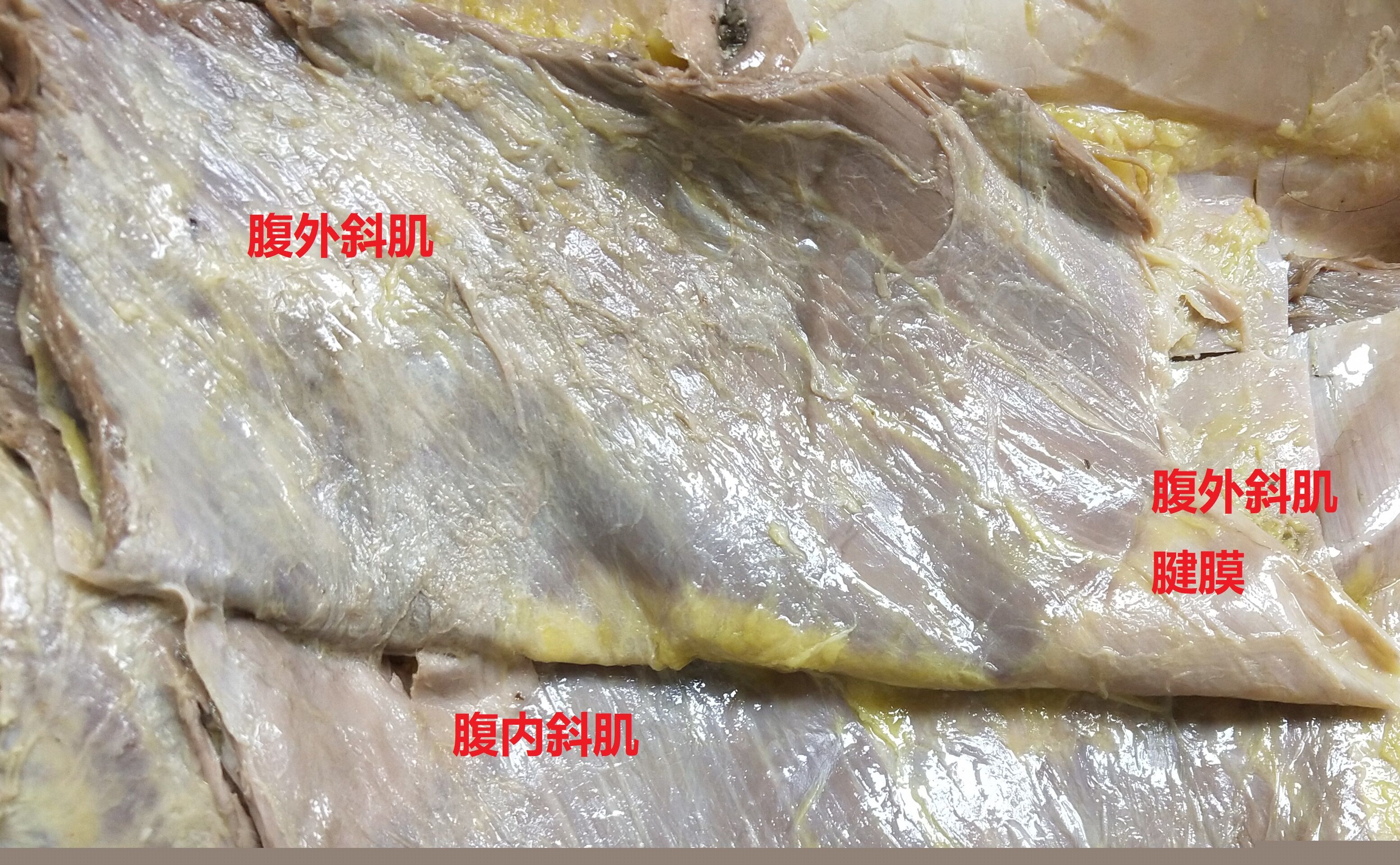 腹直肌外侧的三层扁肌的肌纤维方向在髂前上棘水平线上发生变化,在其平南以上三层扁肌的肌纤维方向相互交叉近似垂直,在其平面以下,三层扁肌的肌纤维方逐渐趋于一致行向内下。