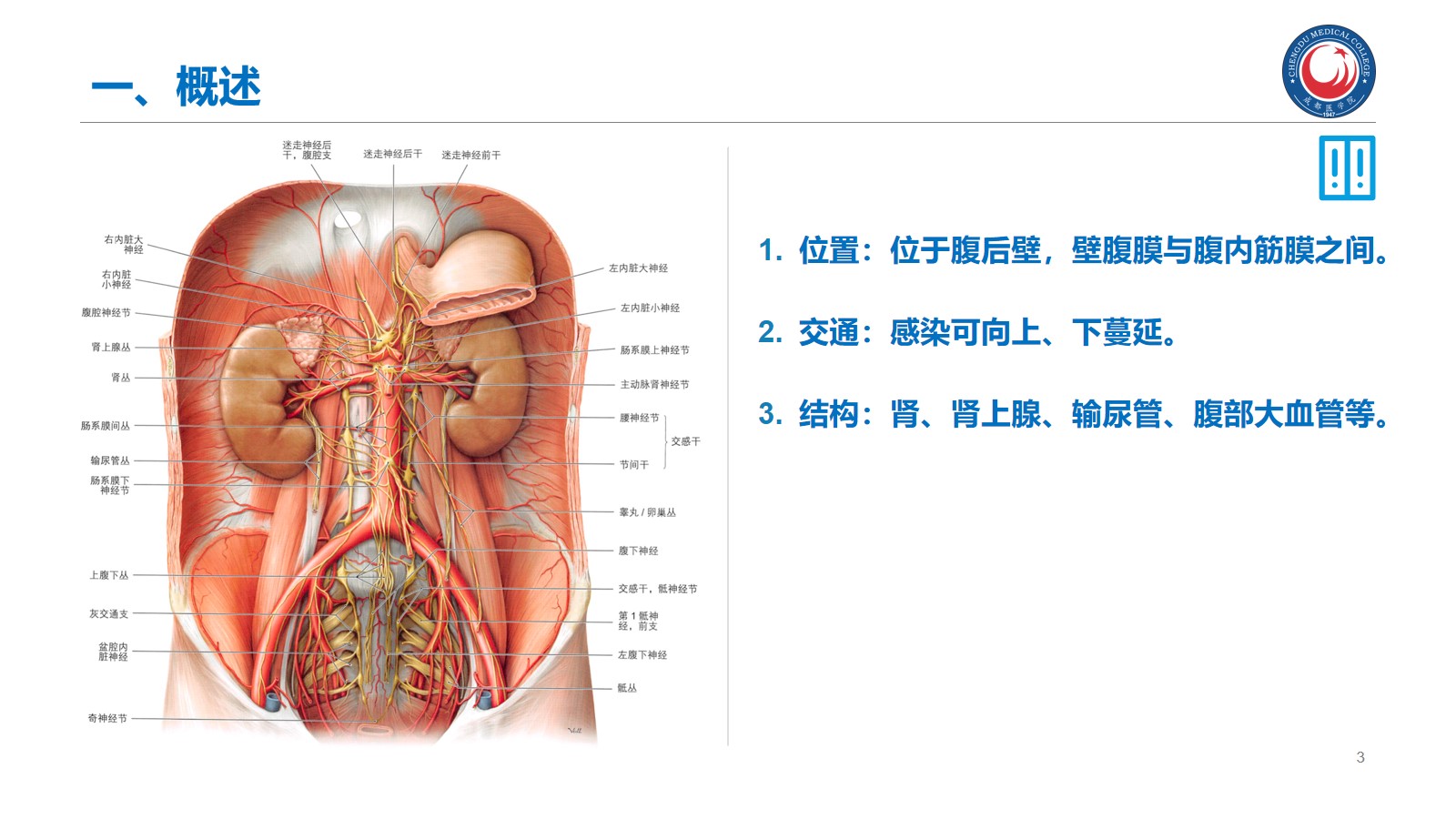 了解:腹膜后间隙的位置和界限、主要脏器以及对腹膜外手术的意义。