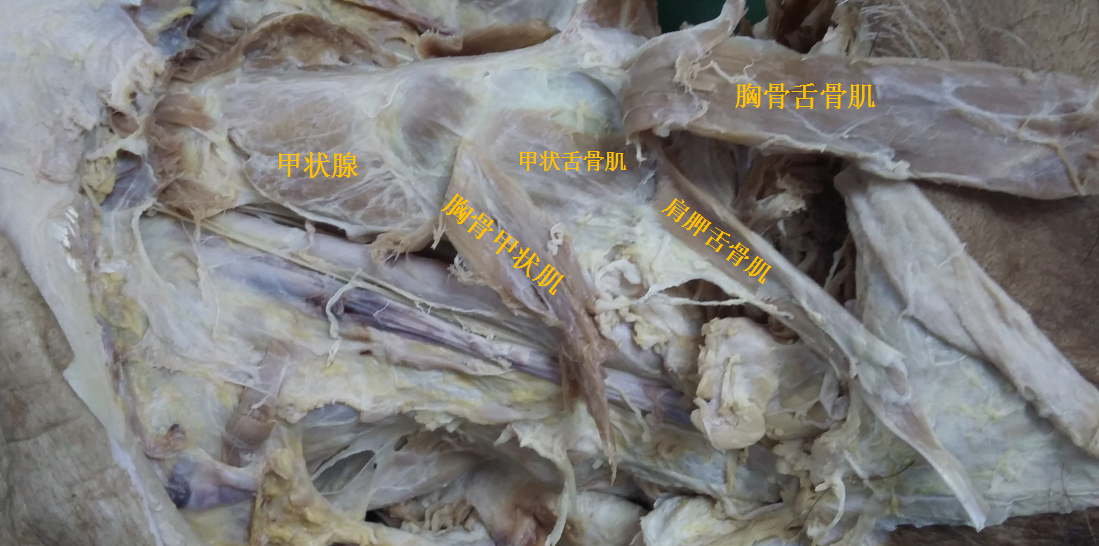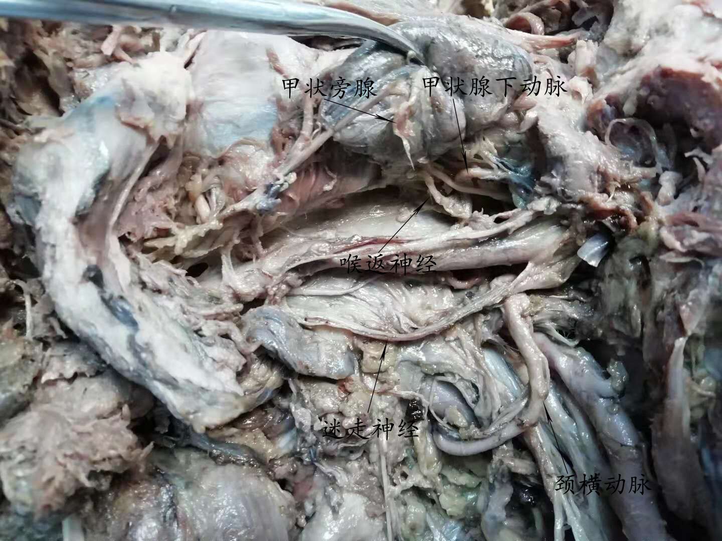 在颈鞘的浅面,平环状软骨高度有颈袢。