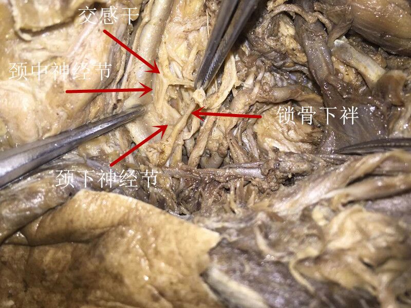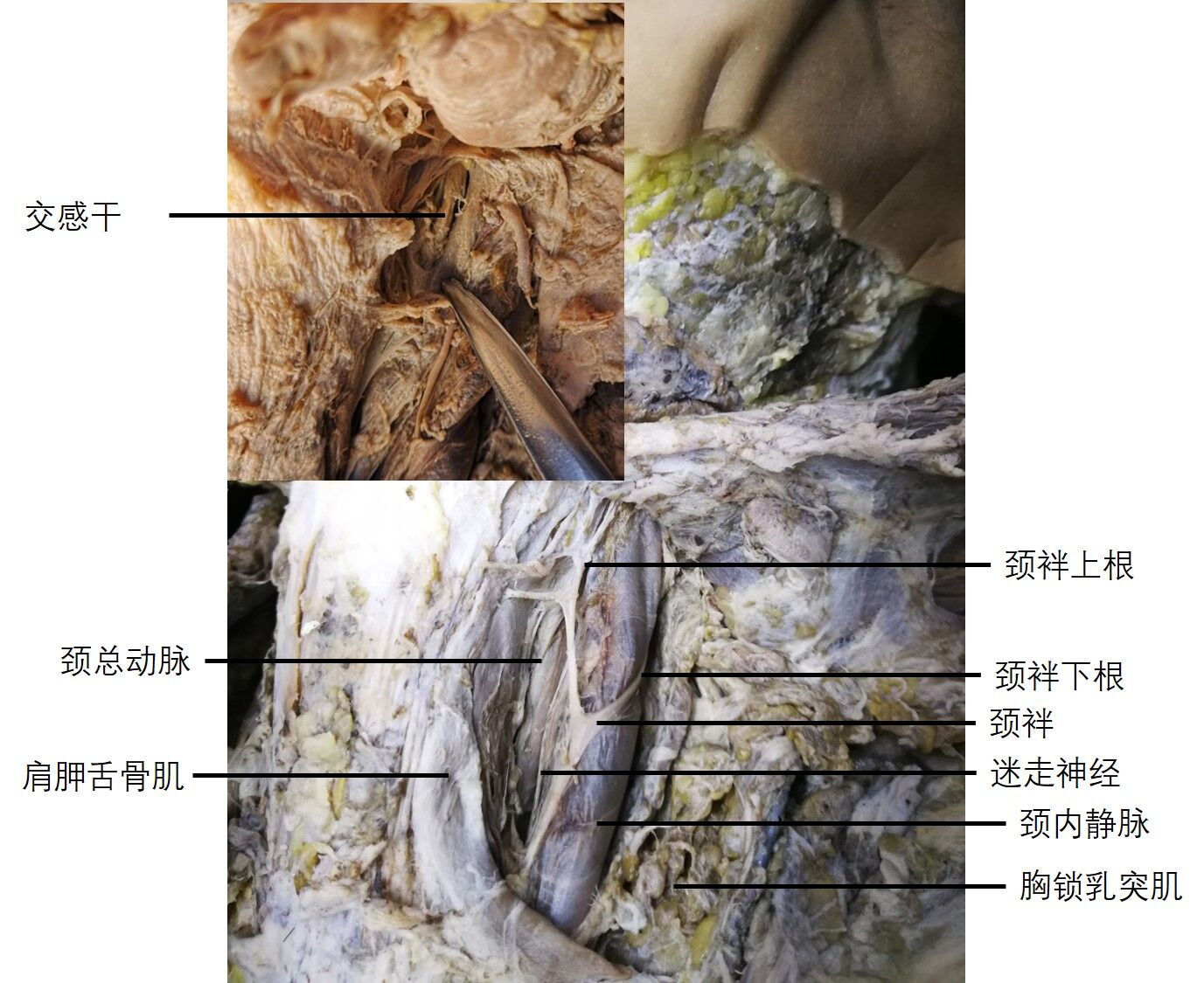 颈动脉鞘深面有颈交感干二者间有颈深筋膜深层相隔。