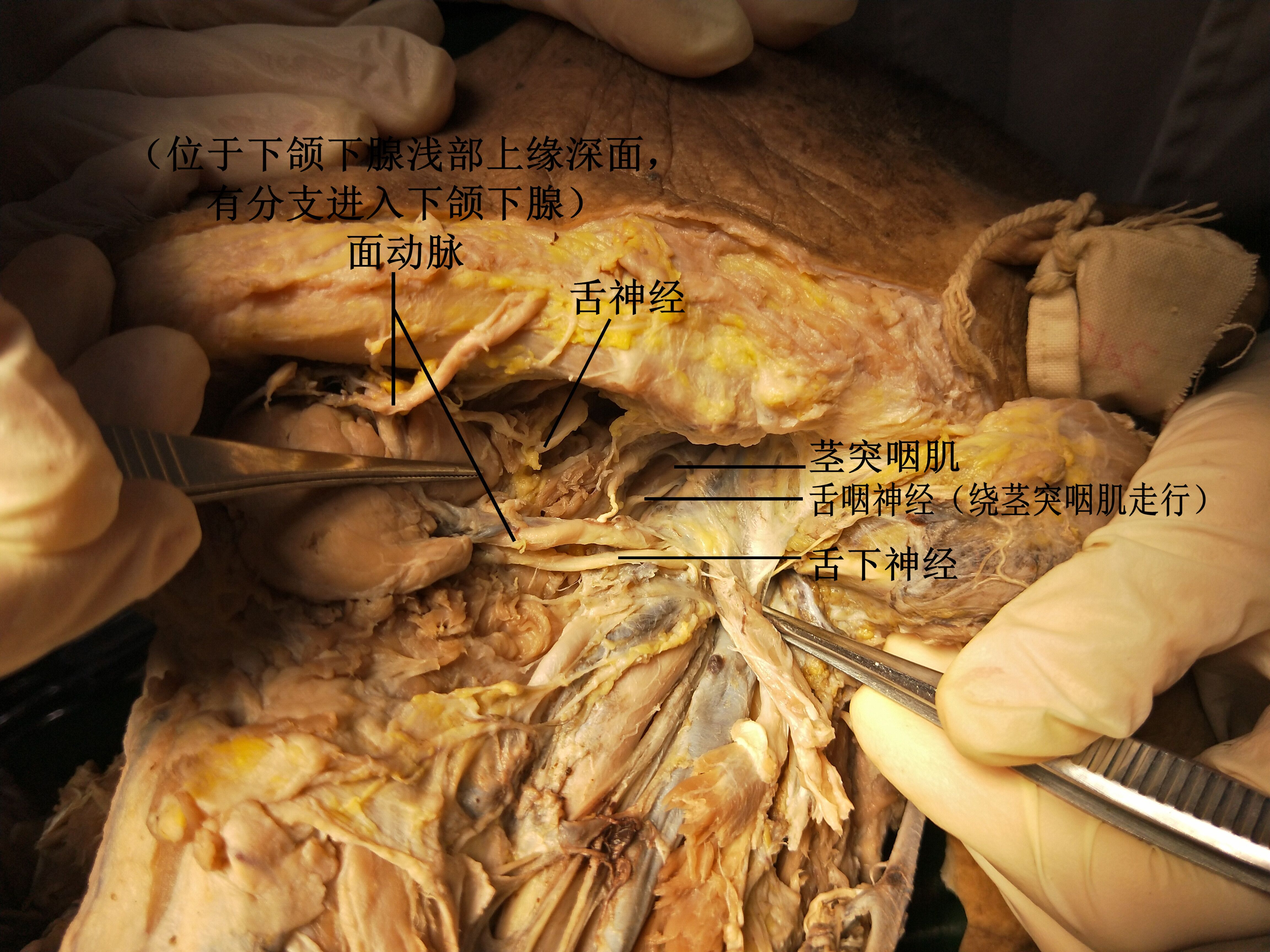 舌下神经于颈内静脉、颈内动脉之间出现,经枕动脉下方弯向前下。后弯向前上进入下颌下三角。