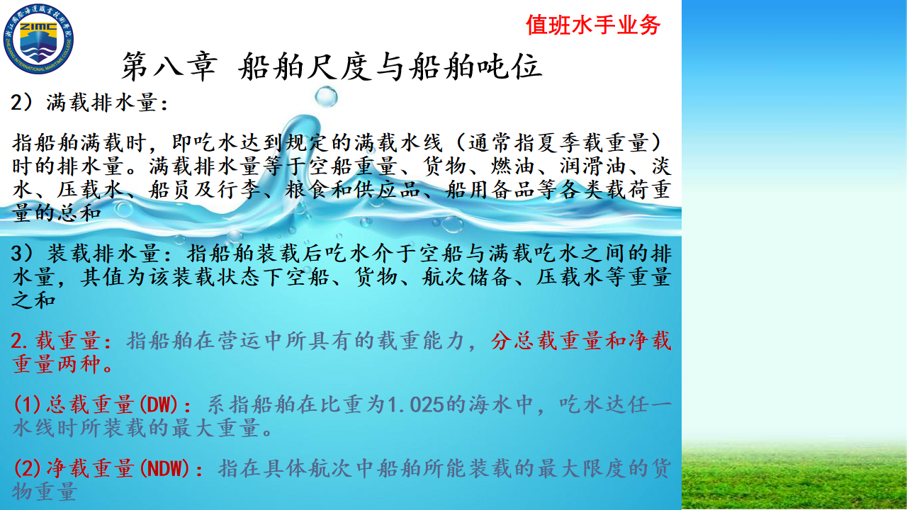 第二节  船舶排水量和载重量