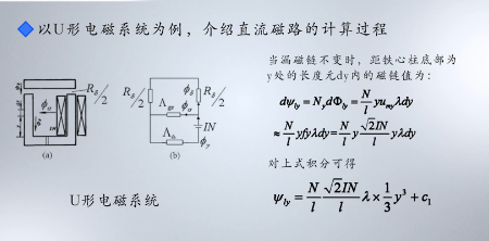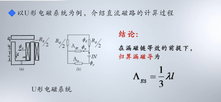 ①对于线副套在铁心柱上的U形电磁系统,若使其等效磁路为单回略,则将其分布葡磁导归算到全部磁动劳而成为集中漏磁导时: