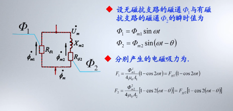 由于磁通的正弦交变性,使交流电磁系统的吸力具有脉动性,其值在-2F之间,按2倍电源频率周期性变化。