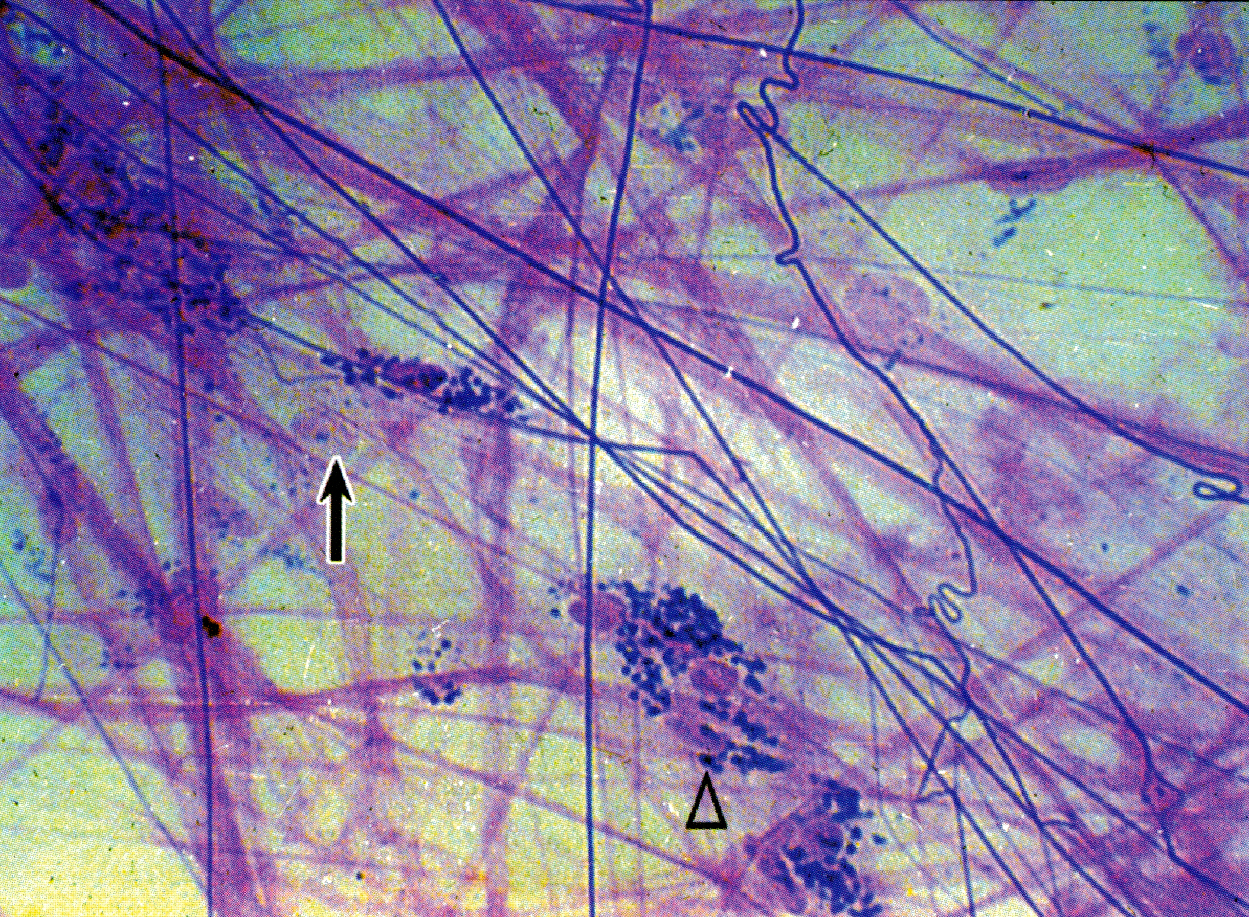 运动终板猫肋间肌整装片氯化金染色3.3 xl0(上海医大)
