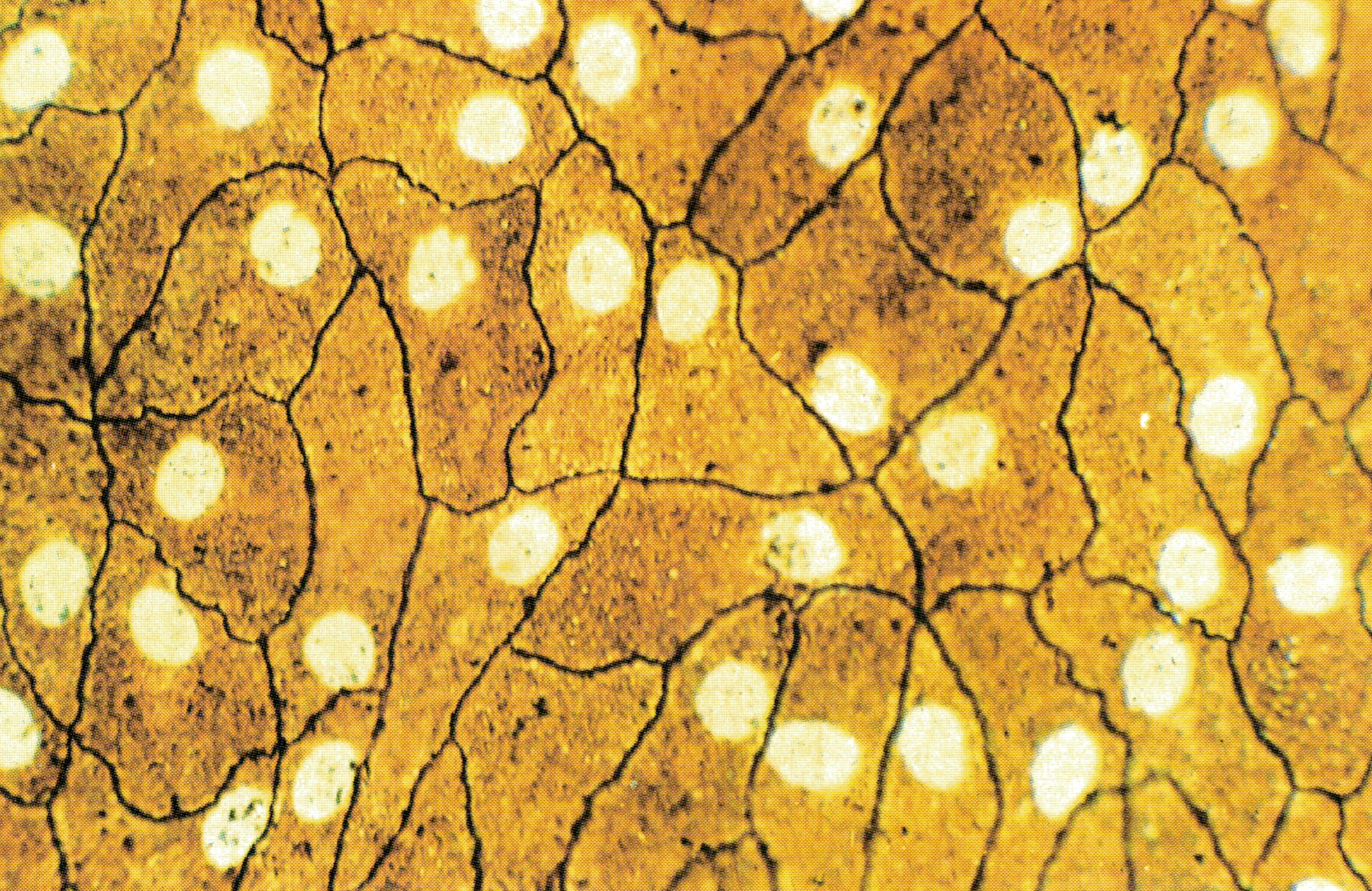 单层扁平上皮(表面观)蟾蜍肠系膜铺片镀银染色3.3 x40(上海医大)