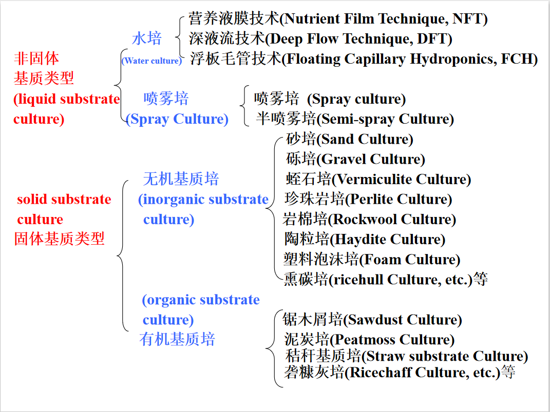 无土栽培可以根据基质类型分为两类:非固体基质类型和固体基质类型。