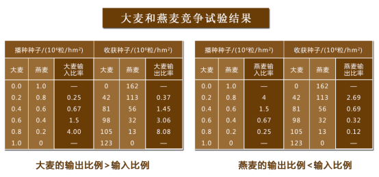 大麦和燕麦竞争试验,实验结果如下: