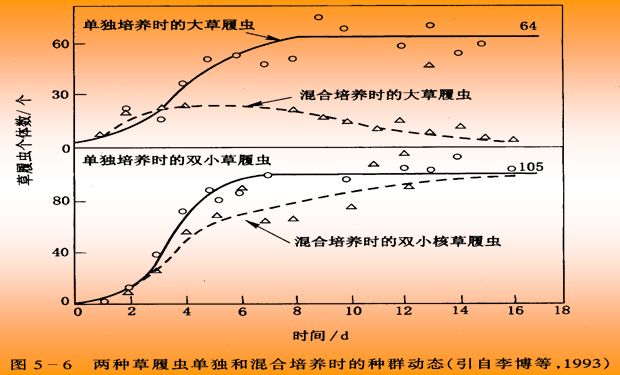 竞争的结果,生态位相同的两个种群不能永久共存, 这就是高斯原理( Gause’s principle),又称竞争排斥原理(competitive exclusion principle)。