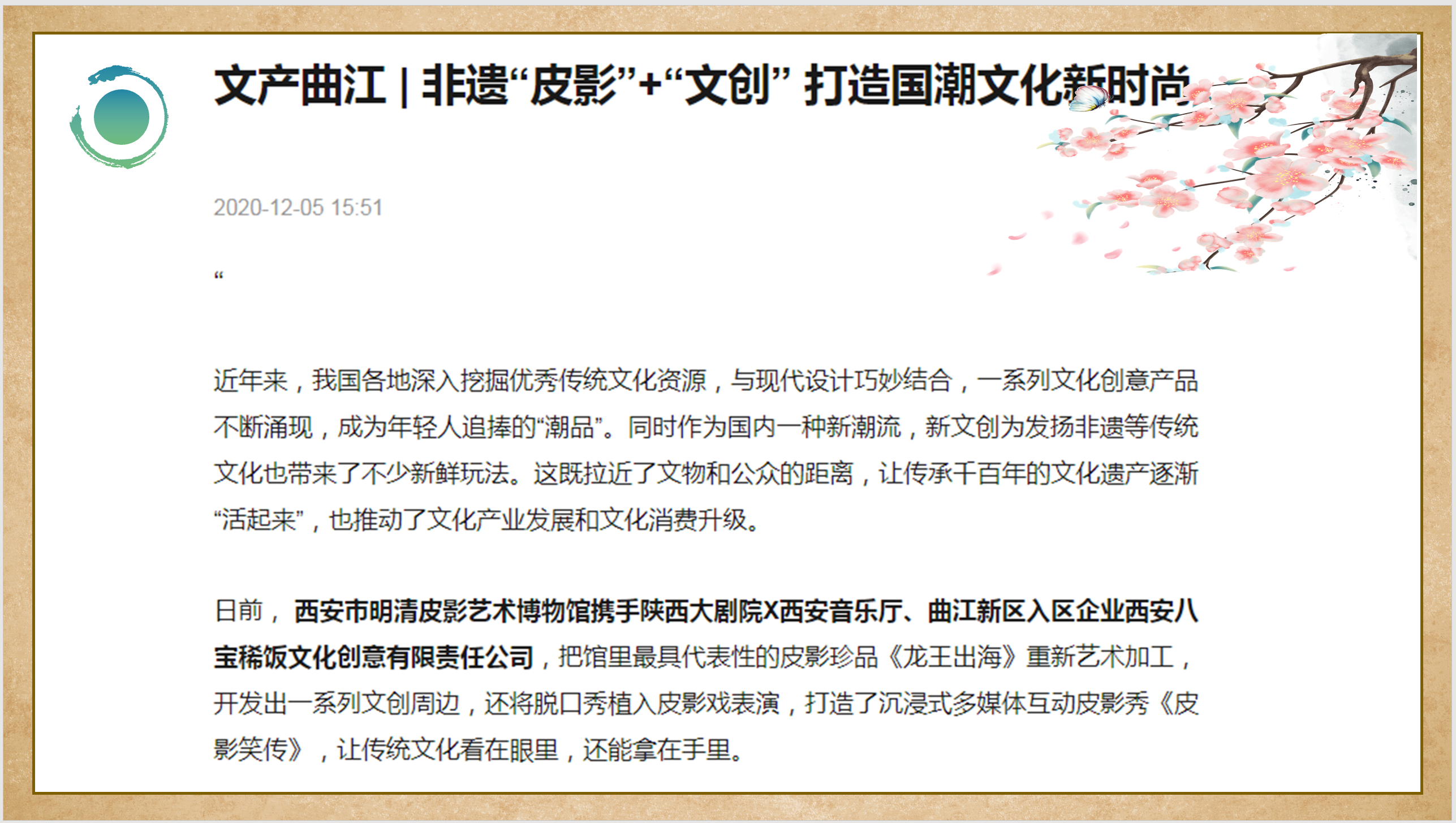 传统文化中还有相当一部分不具备物质形态的载体,但是却与人们生活紧密相关、具有一定的历史、艺术、精神等价值的文化形式,如各类民俗活动、表演艺术形式、传统知识和技能、民间文学等,以及与之相关联的各类器具和手工制品等。随着当前现代化进程的加快,许多非物质形态的传统文化逐渐失去生存的根基,面临失传的危险。因此通过将非物质文化元素与现代创意相结合,既有利于为当代创意提供新的文化内涵和来源,又是加强非物质形态的传统文化保护和传承的重要方式。借助现代创意技术,通过面向市场的商业机制,开发出具有时代生活气息、技艺与内涵兼备的文创产品,可以在保护传承的基础上,以新颖的形式表现出非物质文化本身的文化价值,并以经济效益与社会效益反哺非物质文化保护,促进其可持续发展。