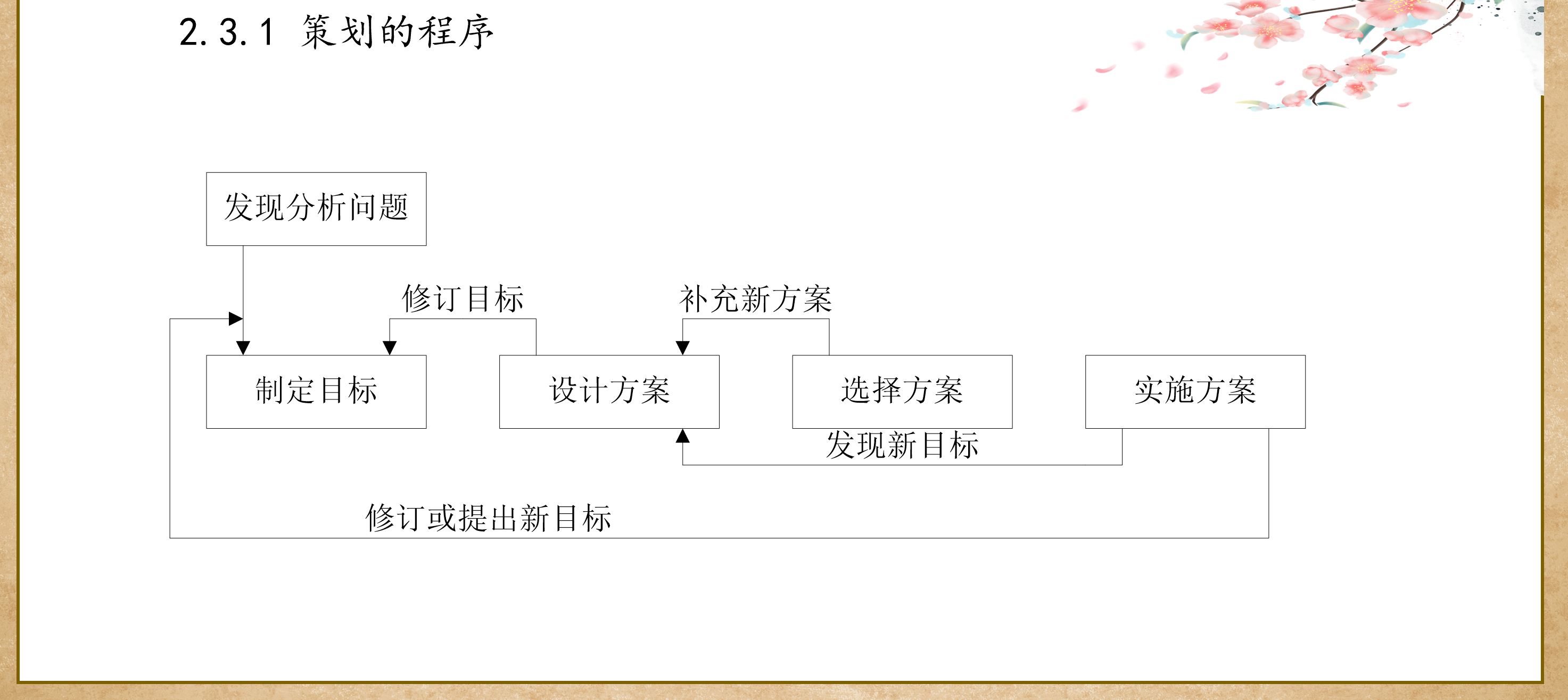 文化策划是一个系统性工程,按照一定的科学程序进行策划也就成了策划成功的必要条件。因此,策划要明确先做什么,后做什么,按照一定的步骤、程序展开,在符合客观规律的前提下去做。科学的文化策划程序应包括制定目标、设计方案、选择方案、实施方案几个前后关联的步骤。