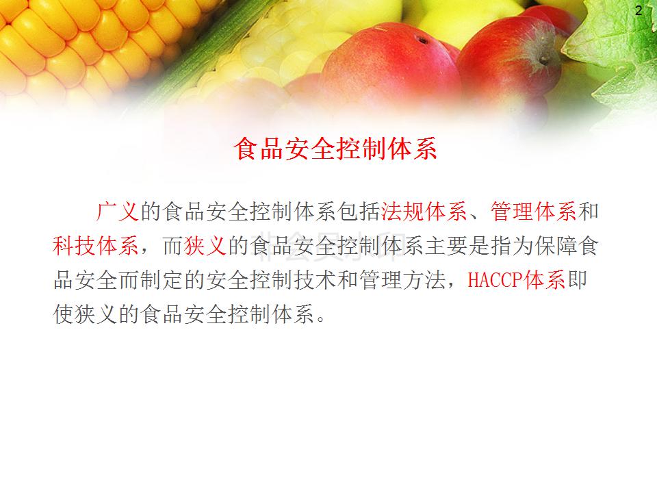 1、掌握食品安全控制体系的概念,了解常用食品安全控制体系的特点;