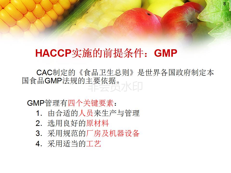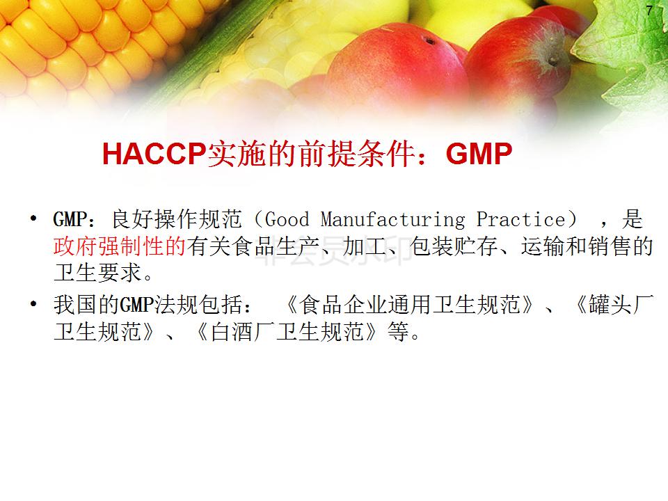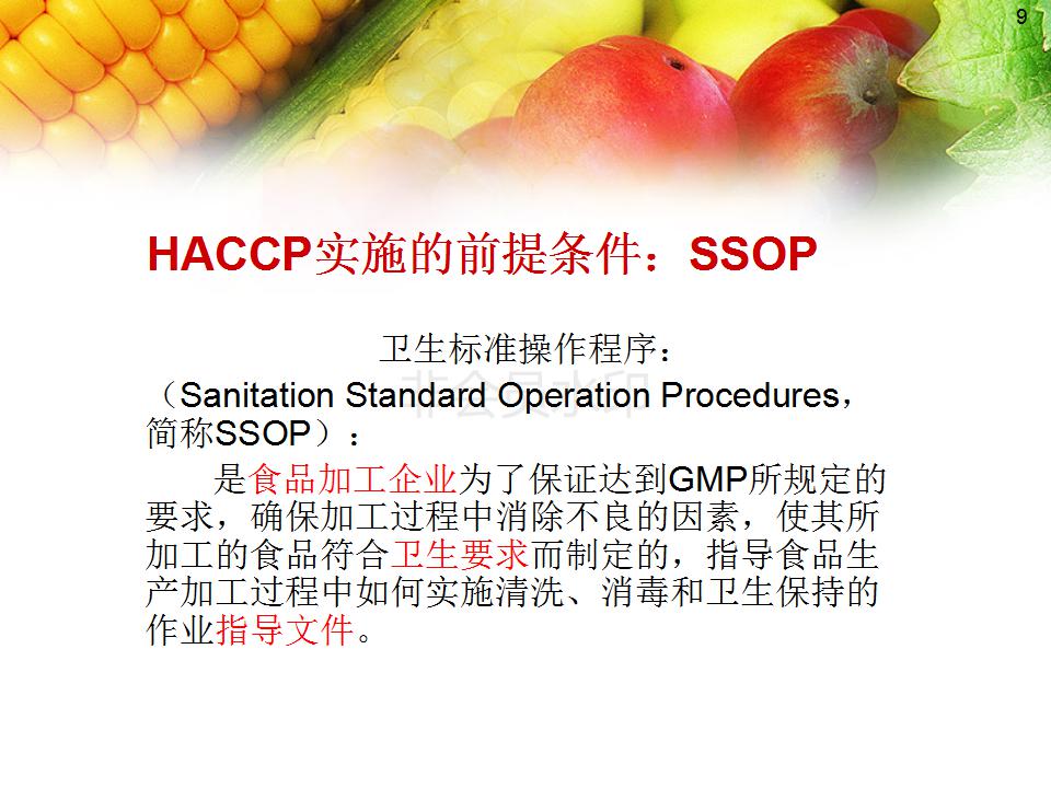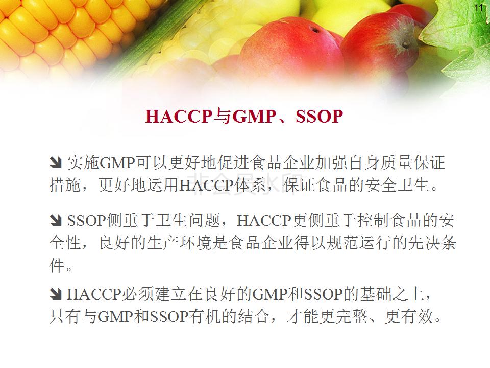 2、熟悉GMP 、SSOP内容及与HACCP的关系;