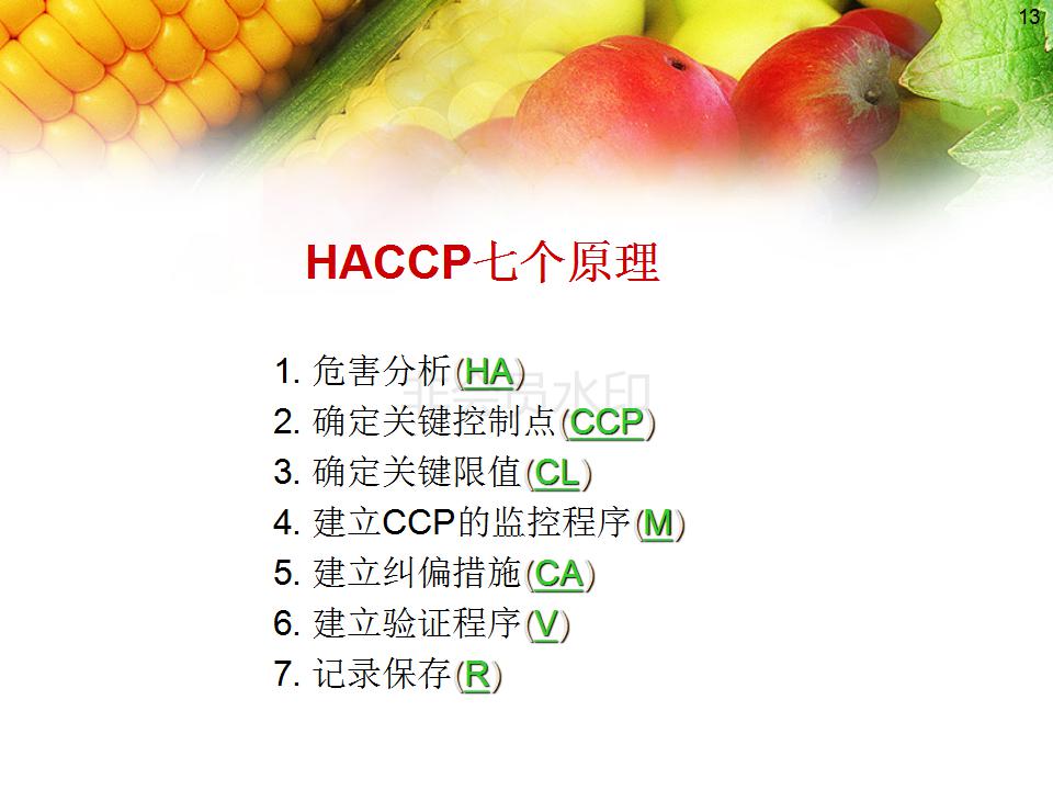 3、掌握HACCP体系的基本原理。