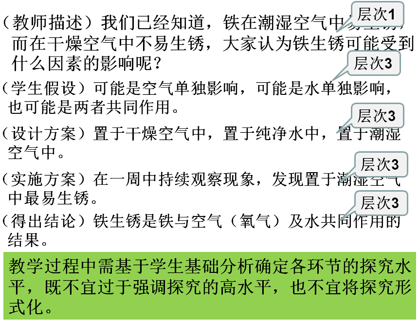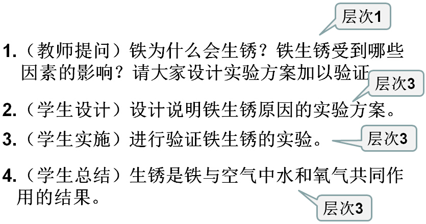 (3) 在确定各环节的探究水平时,需要充分考虑学生的已有基础,使得探究活动以最有效的方式展开。