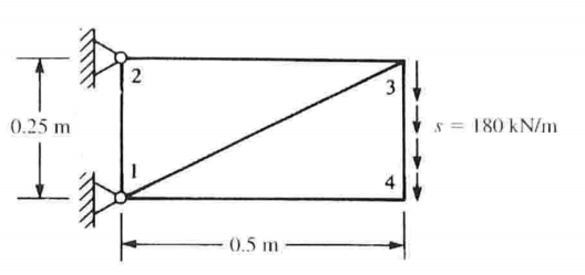 对于图示薄板,在右边作用均匀剪切荷载,确定节点位移和单元应力,包括主应力。令E=210GPa,泊松比v=0.30,板厚t=25mm(书上6.13)