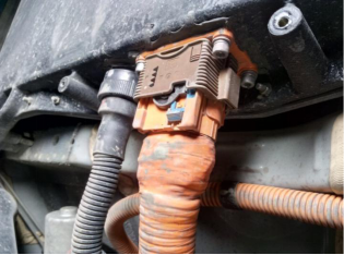 第五步 拆下动力电池线束插头护板及高低压线束。