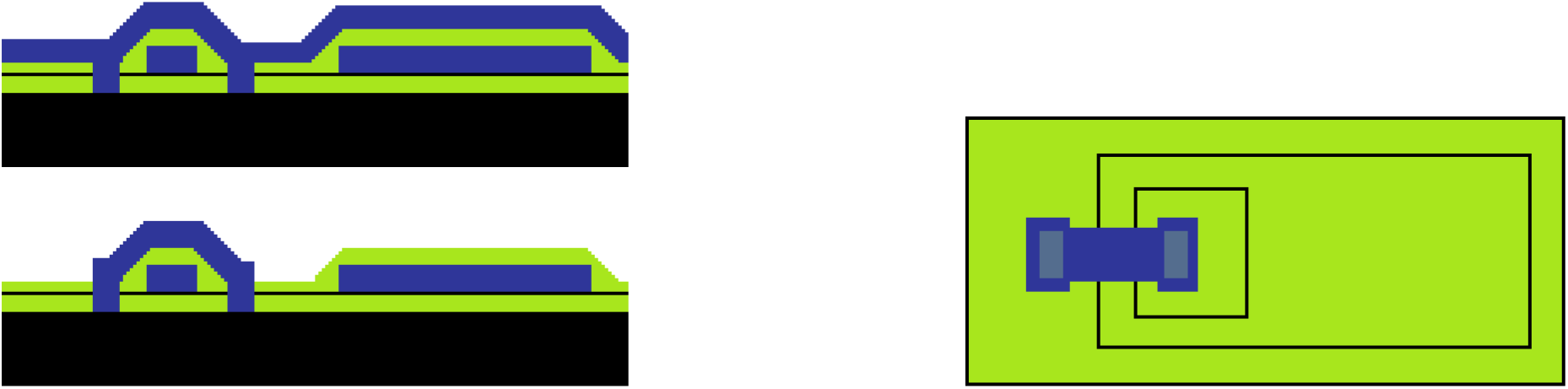 The following is an example done by one of students. The process can be done with 2 polysilicon layers. The topography is a result of the conformal deposition (i.e., good step coverage). You don’t have to perform extra deposition step to create the topography.