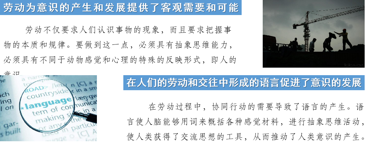 实践活动不但形成了社会存在,而且还创造了意识,使世界二重化为客观世界和主观世界。意识是人脑的机能和属性,是客观世界的主观映象。物质对意识的决定作用表现在意识的起源、本质和作用上。
