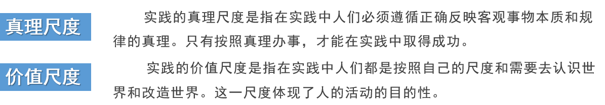 任何成功的实践都是真理尺度和价值尺度的统一,是合规律性和合目的性的统一。价值尺度必须以真理为前提,脱离了真理尺度,价值尺度就偏离了合理的、正确的轨道。人类自身需要的内在尺度,推动着人们不断发现新的真理,脱离了价值尺度,真理就缺失了主体意义。真理尺度与价值尺度是否达到了具体的、历史的统一,必须通过实践来验证。