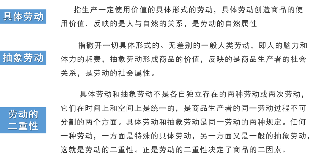 商品是劳动产品,生产商品的劳动可区分为具体劳动和抽象劳动。