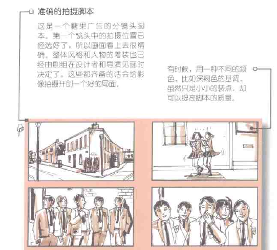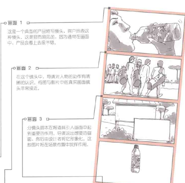 因为蕴藏着大量的工作机会并能很快实现设想,因此,广告可能是分镜头脚本设计者最容易涉入的一个领域,广告的分镜头脚本一般包含6个到30个镜头,如果幸运的话,能给你一天到两天时间完成这项工作,但有时候只允许你在几小时内完成,所以大家需要有快速绘画的能力,以及在压力下出色完成设计的能。广告界的薪酬一般高于其他领域,在三个领域(广告、电影、电视)中广告对创意的要求最高。而这些创意最终是为了销售,所以设计者需要有敏锐的设计能力、眼光。