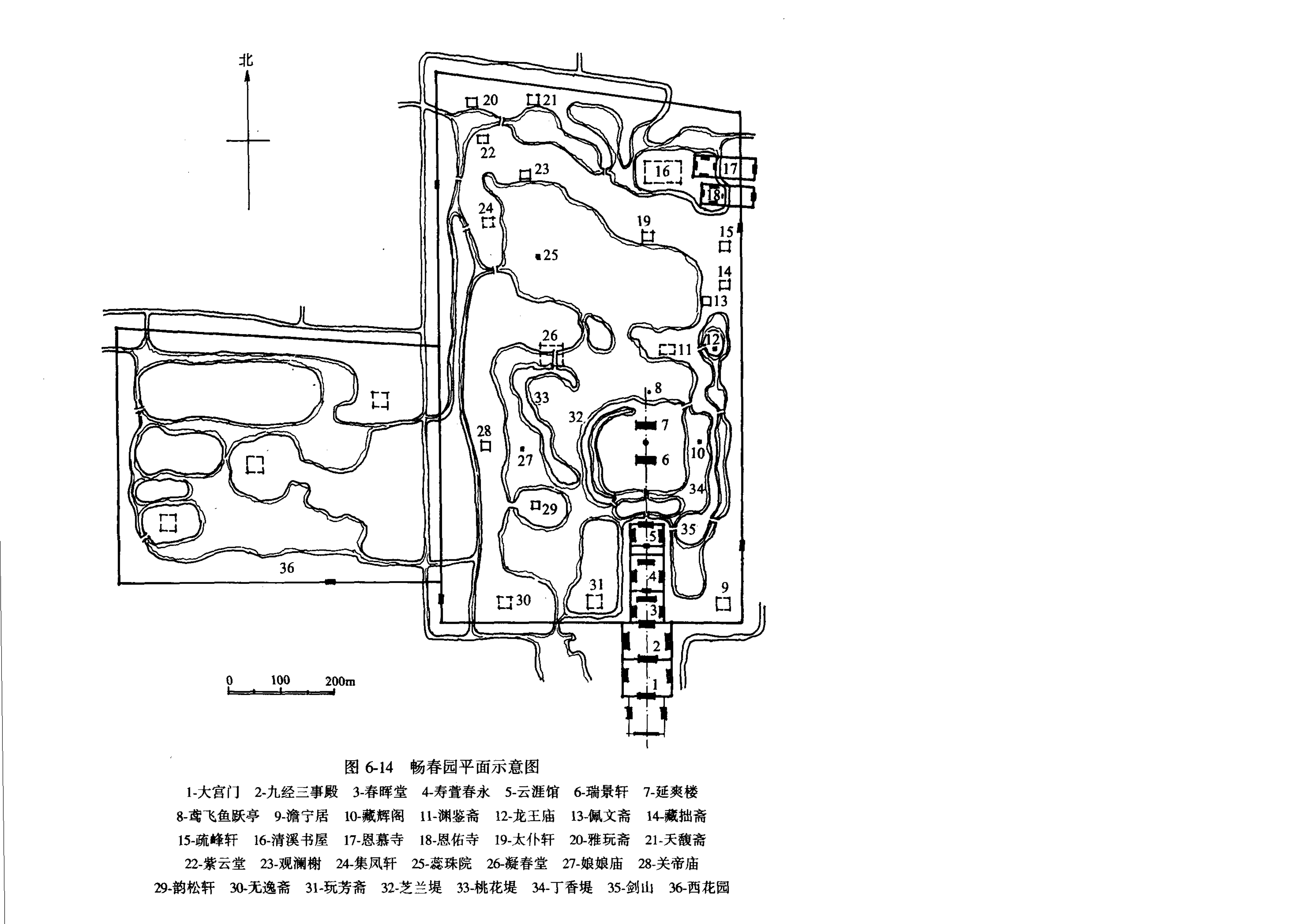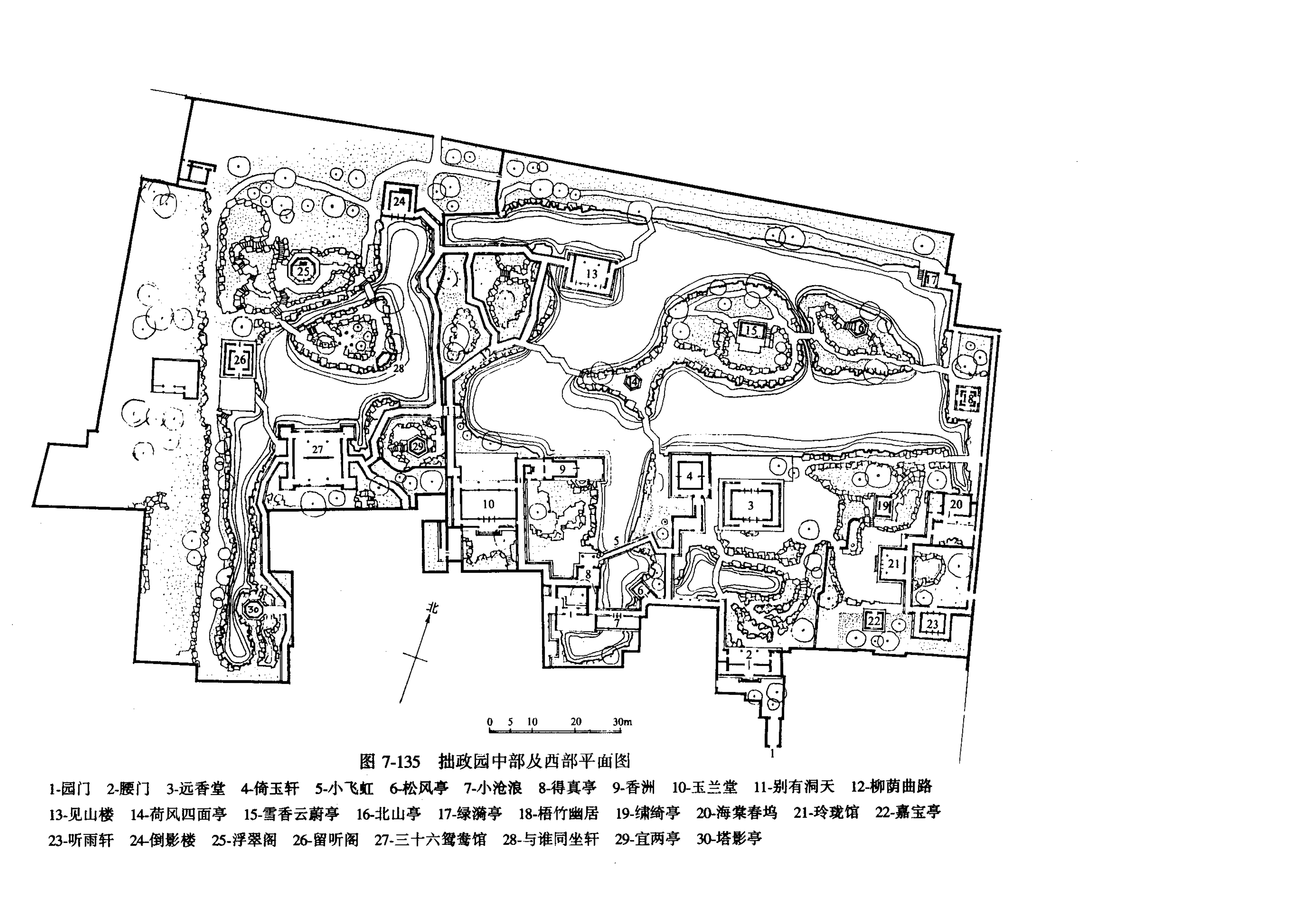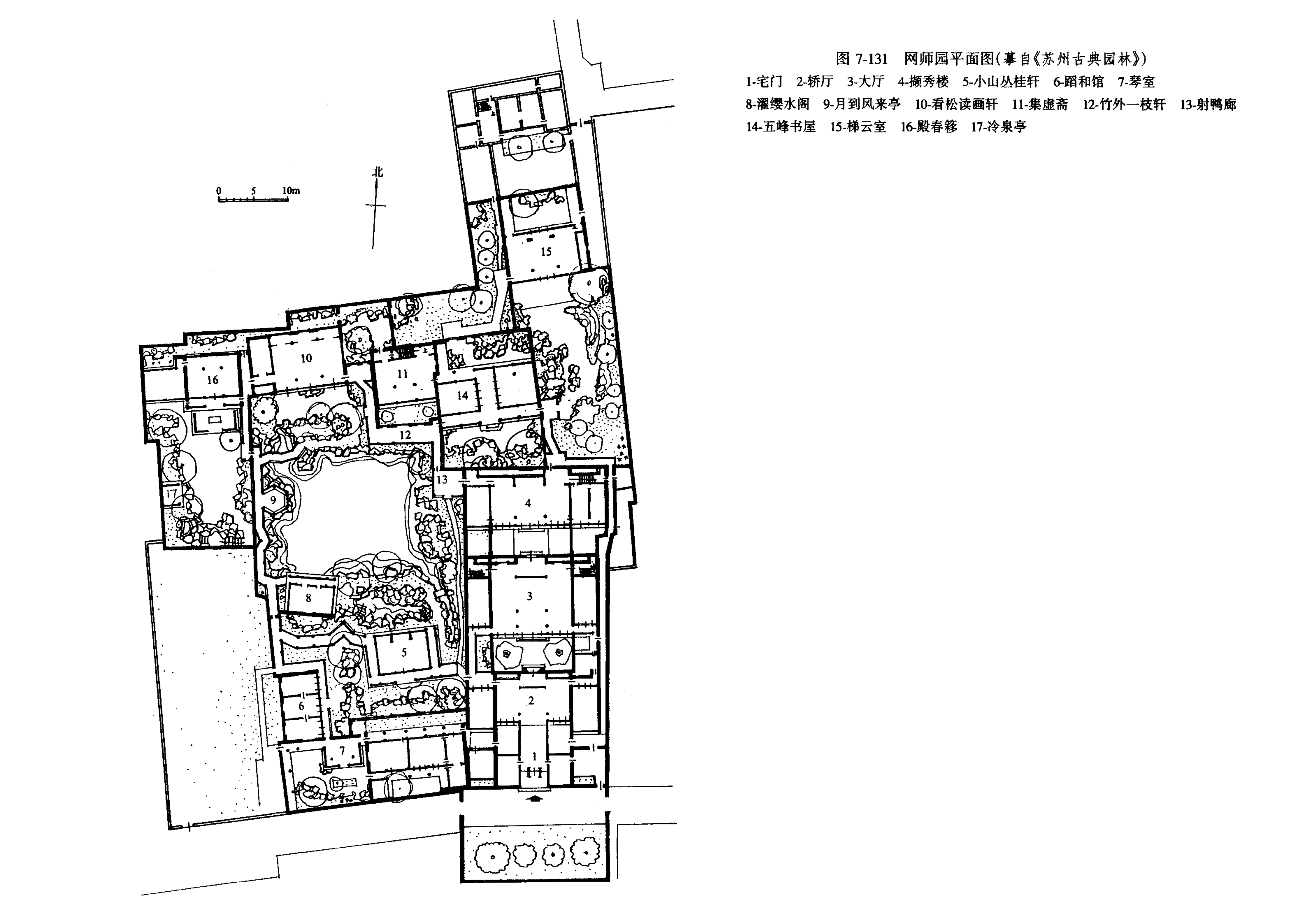 以下为经典古典园林平面图,请同学们仔细观察,通过选择性抄绘进行学习。归纳概括古典园林的水体特征与形态等要素。