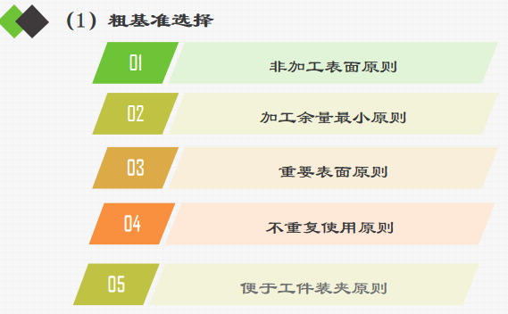 4.工件的安装定位方法:直接找正(单件、精度要求不高)、划线找正(单件小批量或者不宜采用夹具的大型零件的粗加工)、夹具安装(准确、方便)