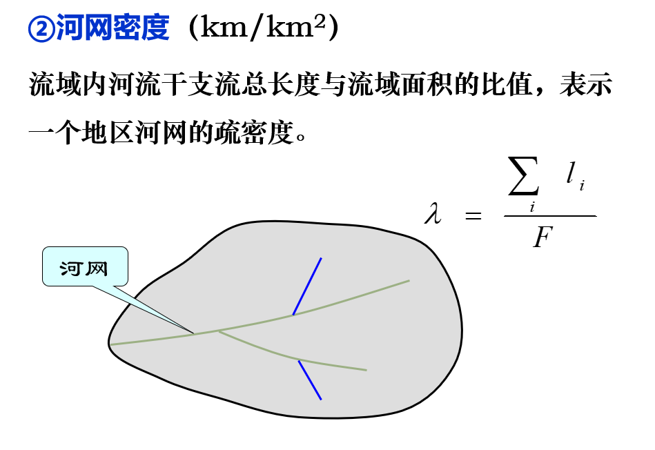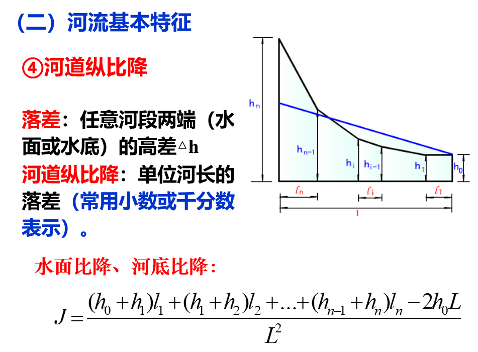 河流的特征参数:(1)落差和比降低;(2)弯曲系数;(3)河网密度;