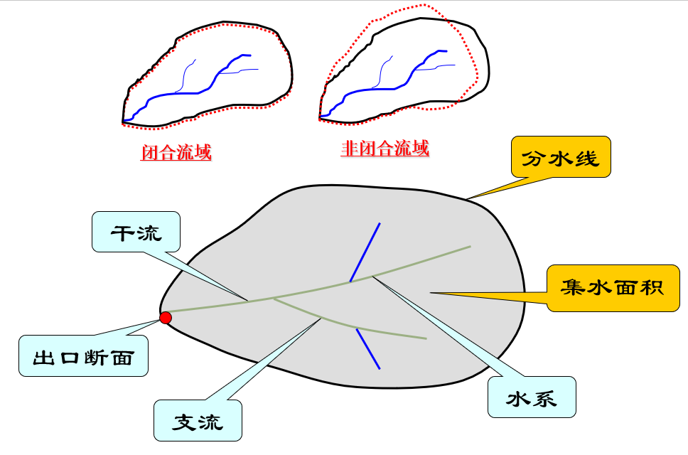 按照地面分水线与地下分水线的关系,分为闭合流域和非闭合流域。