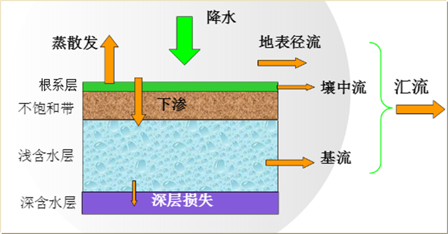 在实际流域的降雨下渗过程中,除了时间变异性外,还存在空间变异性。由于土壤、植被﹑坡度及土地利用情况的空间分布存在差异,加之人类活动,如水土保持、植树造林、平整土地、农田基本建设和都市化等的影响﹐流域中的土壤下渗能力存在空间变异性(spatial variability)。降雨量和降雨强度在流域空间上同样是不均匀的,加之土壤含水率分布的空间差异,因此,流域实际的降雨下渗过程存在高度的空间变异性。