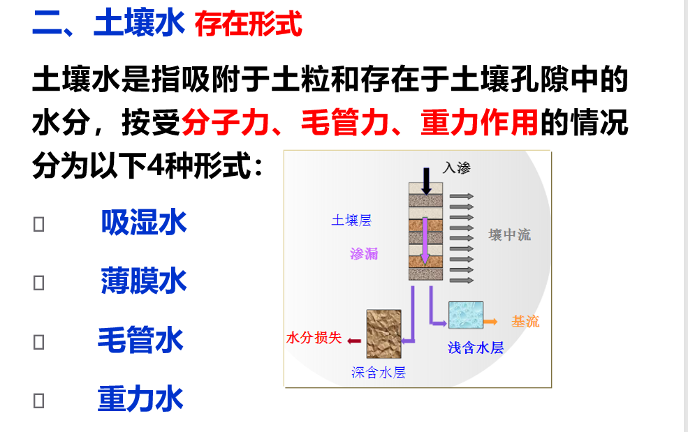 影响下渗曲线的主要因素来自两方面:一是土壤的质地、结构和水的有关性质;二是对土壤质地、结构和水的性质有影响的外部条件。