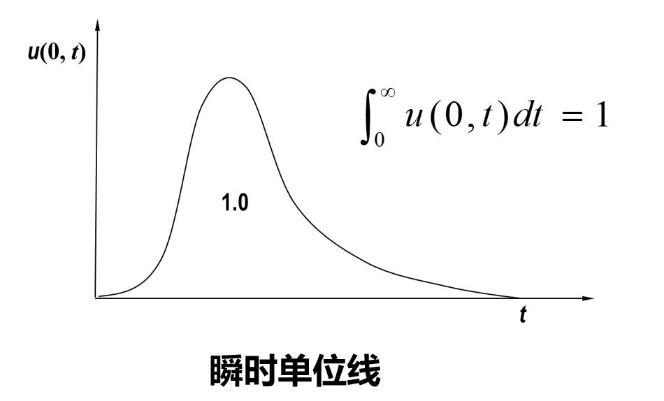 瞬时单位线是指瞬间输入总水量为1均匀分布的单位净雨所形成的流域出流过程线。