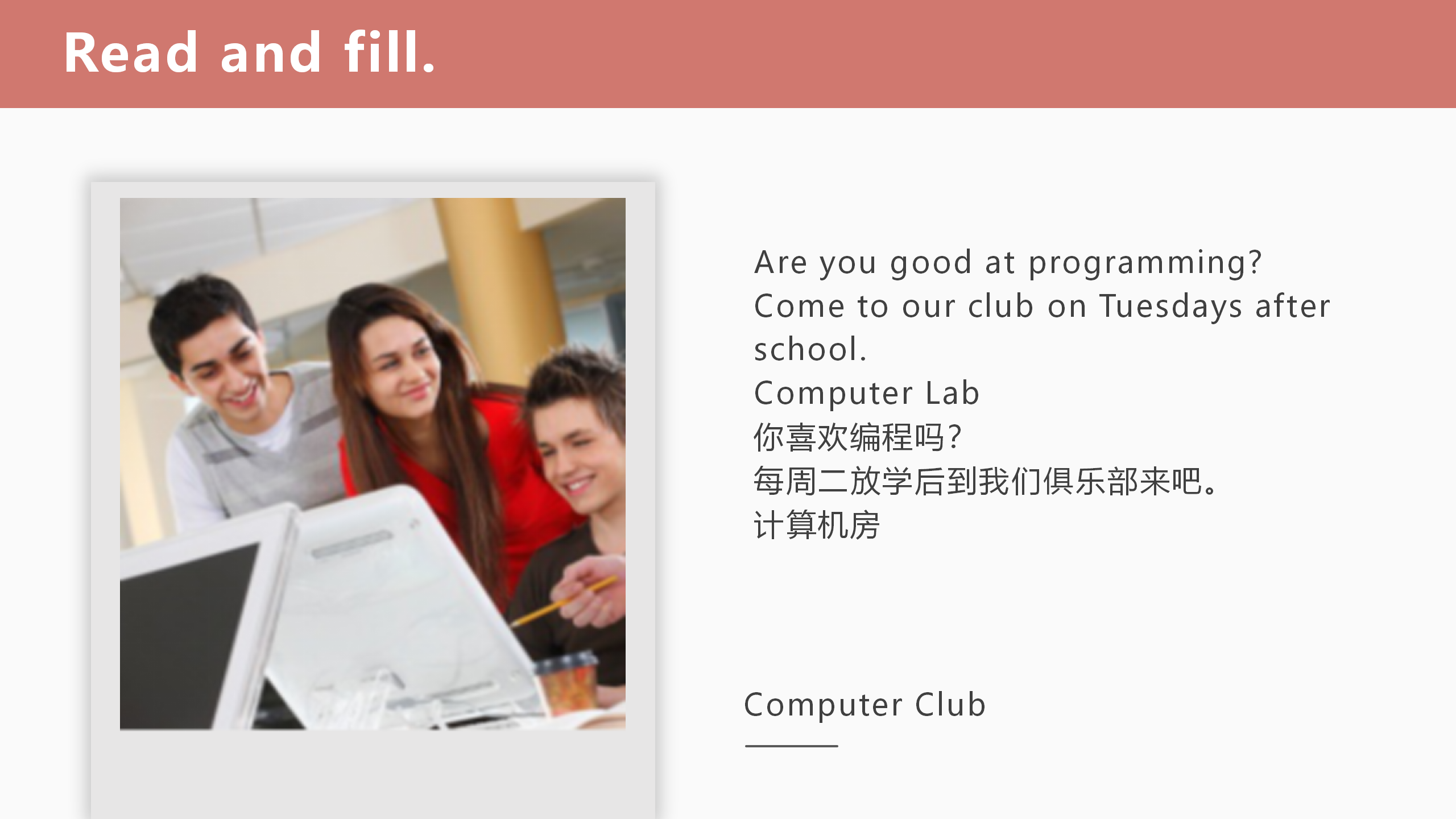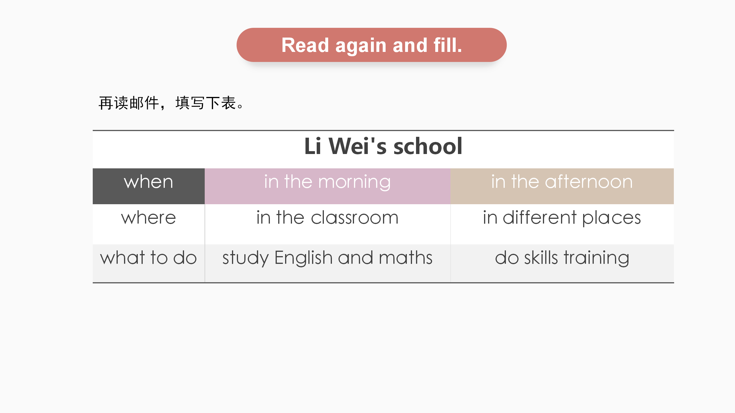 1.Read and learn. 读邮件,了解李伟的学校生活。