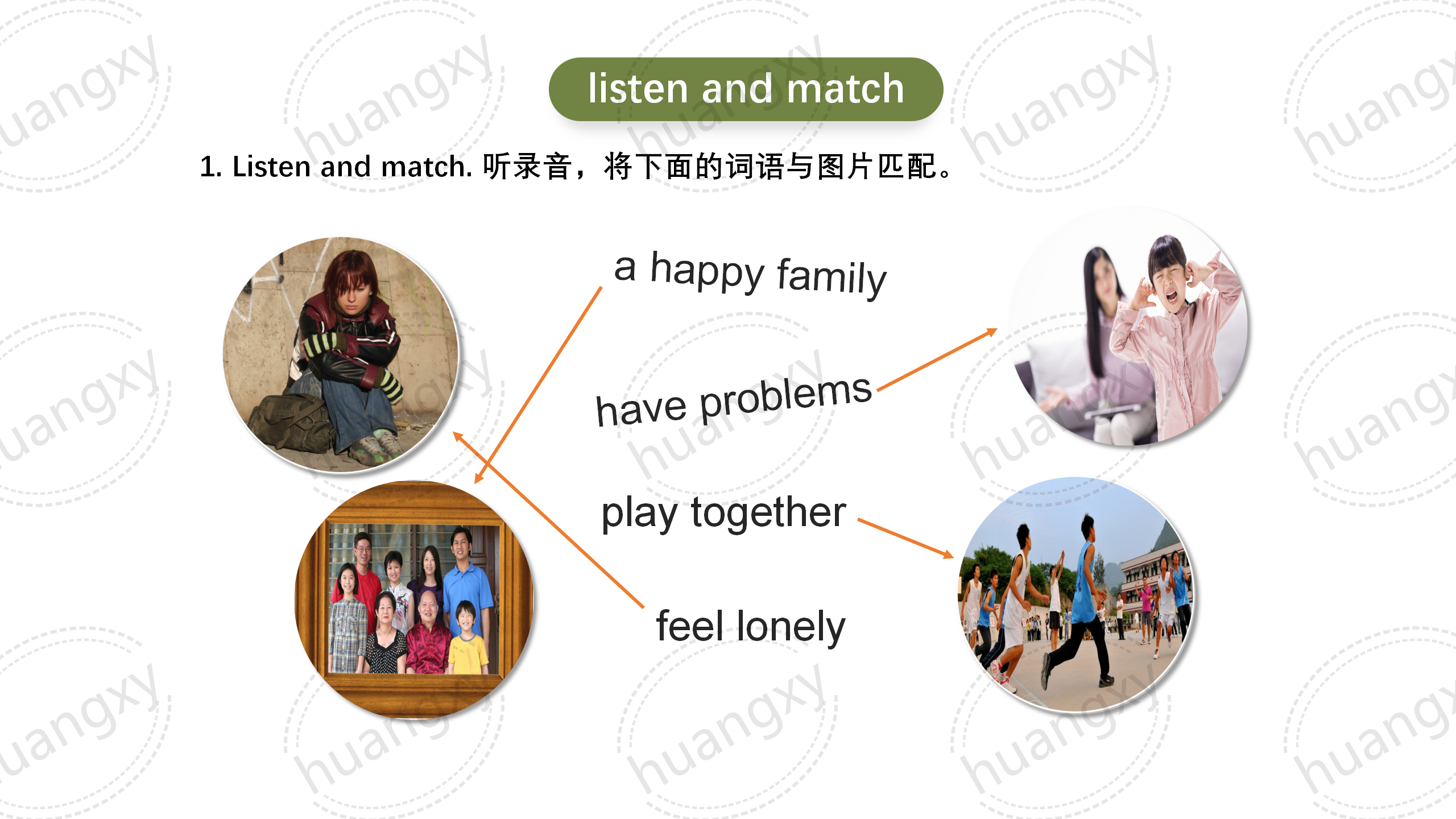 1. Listen and match. 听录音,将下面的词语与图片匹配。