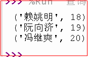 print('姓名:' , nameAge[0] , '年龄:' , nameAge[1])