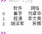 d={'软件':['崔宇','程源','胡泽军'],'网络':['刘卓华','李文竞','所辉']}