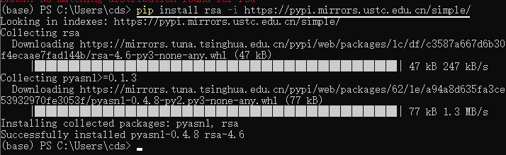 pip install rsa -i https://pypi.mirrors.ustc.edu.cn/simple/