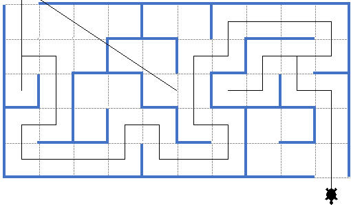 if g[x][(fx-1)%4]==0: # 如果海龟的右面不是墙,就(向右转,走 50 步