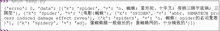 data={ 'kw':'spider'} # spider 是我们需要让网站翻译的词