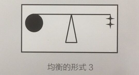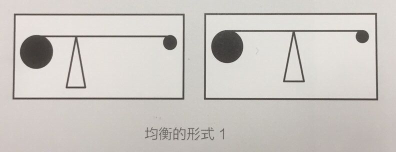 ( 1 )两侧不同体量的形态距离画面的支点远近不同。体量大的距支点近,体量小的距支点远,从而导致了视觉的平衡。