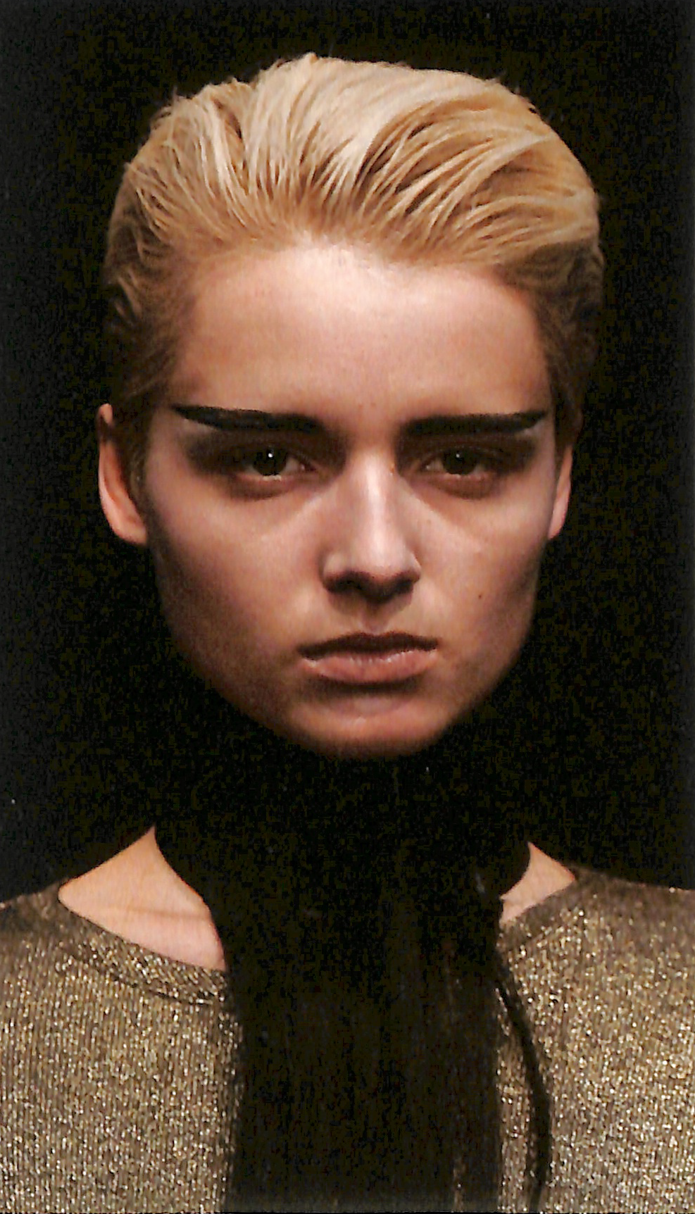 对称与均衡是形象设计中经常运用的形式原理。美国的一位化妆大师曾经研究发现, 凡是完美的面容都是对称的,然而现实中绝对对称的面孔极少存在,这也是化妆所要弥补的。但是过于对称又会使人显得呆板,缺乏生动性,因此,像玛丽莲·梦露、麦当娜、辛迪克劳馥等面带一点黑痣的打破传统审美标准、建立现代审美概念的非平衡状态面孔便开始于20 世纪后期风靡世界。
