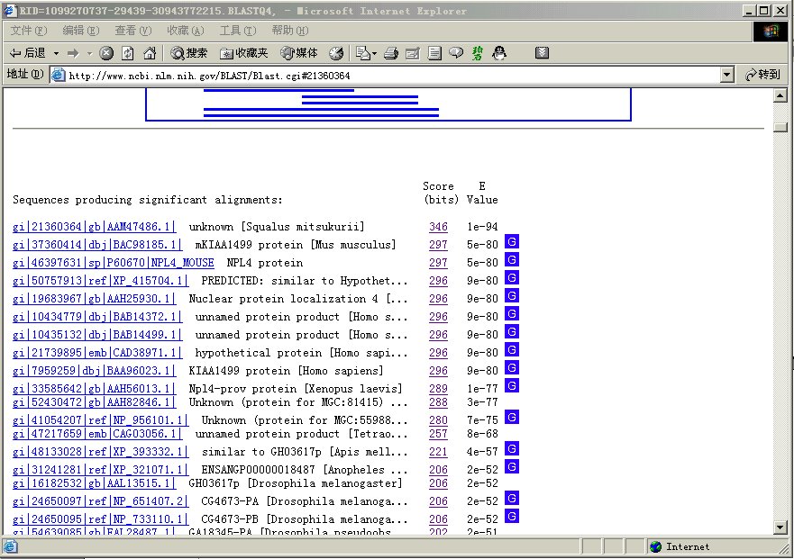 9、根据以下Blast结果,说明我们检索的蛋白质可能的功能注释为 蛋白。