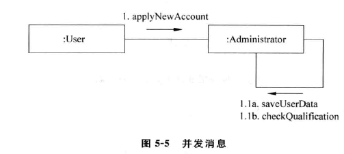 有的时候,几 个 消息需要被同时发送,这样的消息称 为并 发消息 ( Concurrent Message )。图 5-5 展示了一个并发消息的例子。