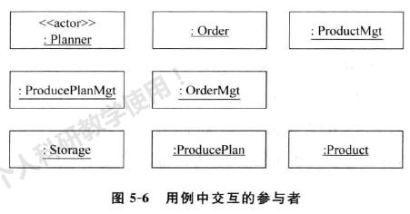 首先,通过用例分析交互的参与者,得 到如图 5-6 所示的创建生产计划单用例中各个交互的参与者。