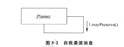 消息可 能 从 一 个 对象 发 送 到 它 自 身,这 样的 消息 被 称 为 自 我 委 派 ( se lf De leg a t i o n) 消息,如 图 5- 2 中的消息 1. may P r es er ve( ) 。