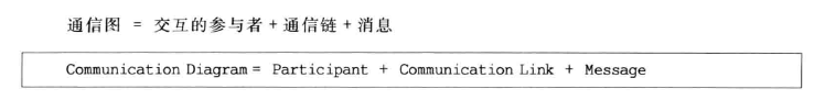 通信图描述参与一个交互的对象的链接,它强询发送和接收消息的对象之间的链接。通信图的表达方式为: