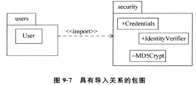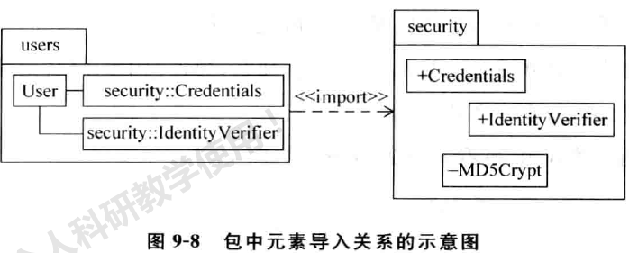 这个例子表示包 u sers 中 的 元 素 Us er 可以访问包 sec ur it y 中的元素 Credent ials和 Id ent it yV eri fi e r ,可以用如图 9-8 所示的形式形象地进行说明。