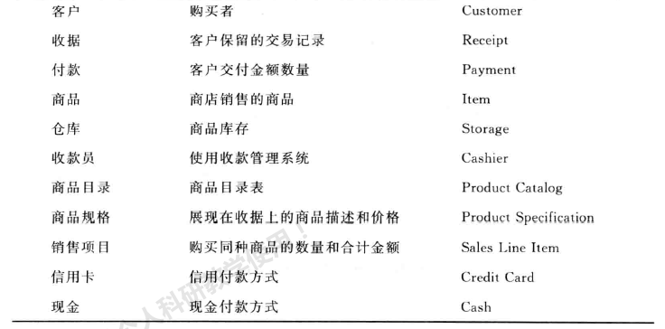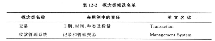根据销售用例,先 选出如表 12- 2 所 示概念作为组成这个用例的概念类候选名单。